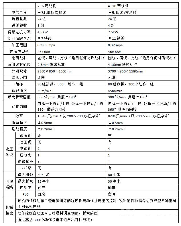 彎線機參數詳情